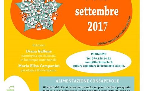 Il seminario, condotto dalla dr. Maria Elisa Campanini, psicologa e floriterapeuta, e da Diana Gallone, naturopata specializzata in bioterapia nutrizionale, é organizzato dall’Accademia di Formazione in Floriterapia e si terrà ad Arzo, in Svizzera, il 9 e 10 settembre 2017.