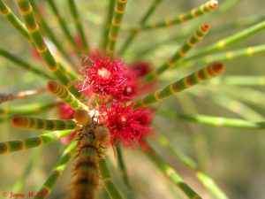 Diffuso nelle zone umide di tutta l’Australia, la Casuarina glauca è un albero dal fusto eretto e dai rami ricadenti, simili a quelli delle conifere. I suoi fiori femminili presentano un apice sferico, che si sporge all’esterno quasi a “catturare” il vento, in modo molto simile a quello con cui le tube di Falloppio accolgono gli ovuli prodotti dalle ovaie. Il fiore si sviluppa poi in un frutto simile a una nocciolina, della stessa misura degli ovociti umani.